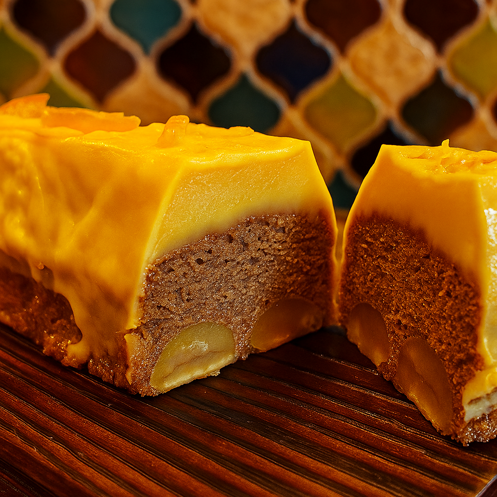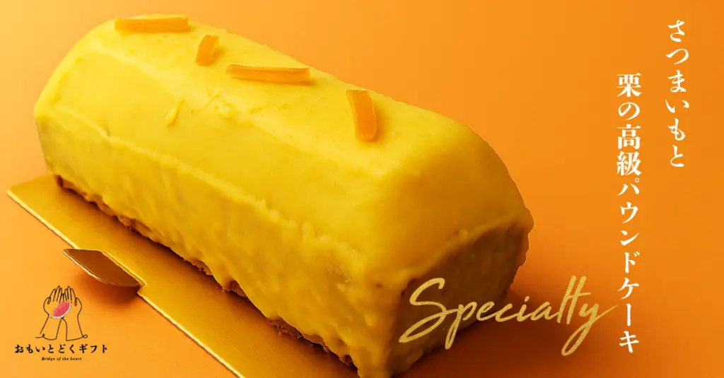 高級感あふれるパウンドケーキに、秋の味覚であるさつまいもと栗を贅沢に閉じ込めました。