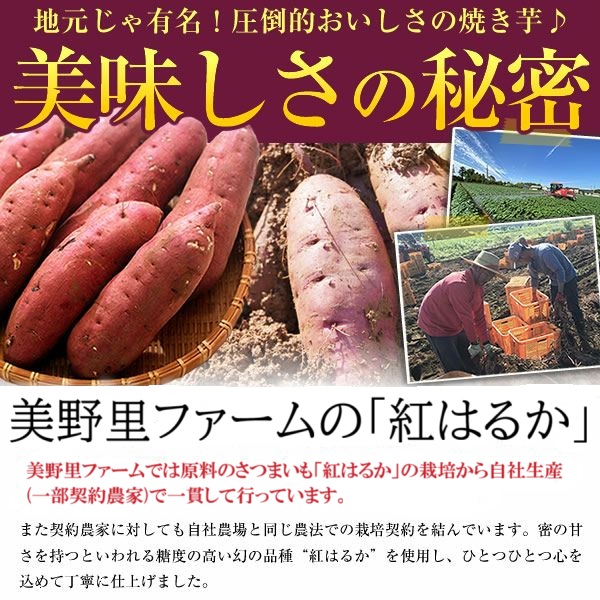 美野里ファームの冷凍焼き芋について 美野里ファームでは原料のさつまいも「紅はるか」にとてもこだわっています。